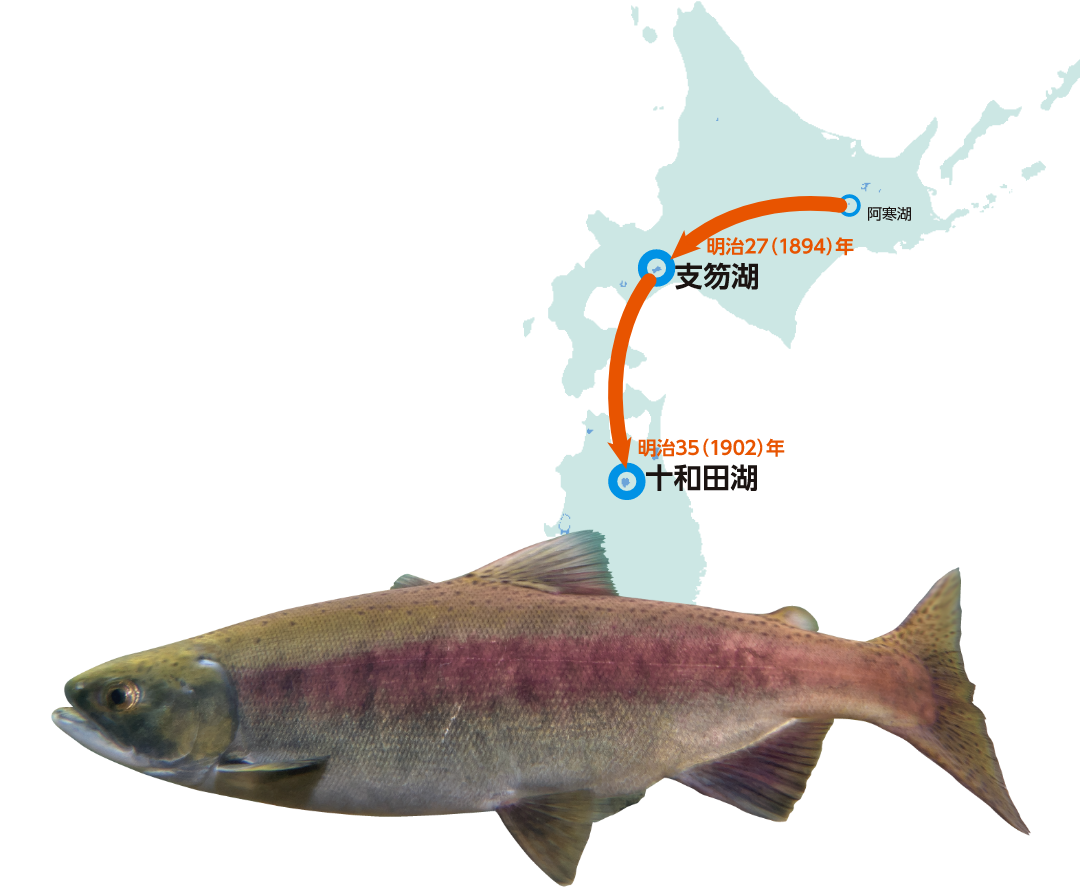 1902年のある日、青森水産試験場を訪れた和井内は、北海道の支笏湖で回帰本能を持つヒメマスの移入を勧められました。和井内はこのチャンスに賭けました。妻の勝と相談し、彼は売れる私財の全てを売り払って資金を調達しました。そして、支笏湖からヒメマスの卵3万個を購入し、ふ化させた稚魚を十和田湖に放流したのでした。家計は非常に困窮していたものの、和井内とその妻は、今度こそついに自分たちの努力が報われると確信していました。
