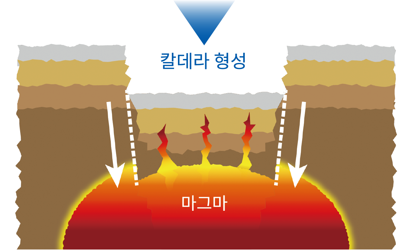 분화로 화쇄류가 발생하여 칼데라가 생기기
