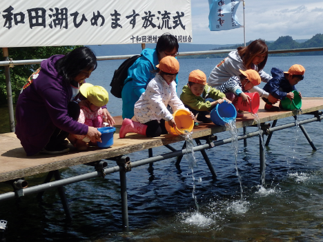 ◎몸길이 5~6cm, 체중 1~3g에 달할 때 쯤 치어는 도와다코 호수에 방류됩니다.