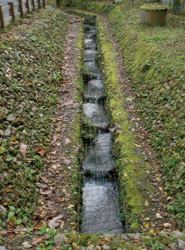 ◎각시송어가 부화장을 향해 거슬러 올라올 수 있도록 물길이 계단형태로 나뉘어진 물고기들의 통행로. 높이 차이는 약 8m.
