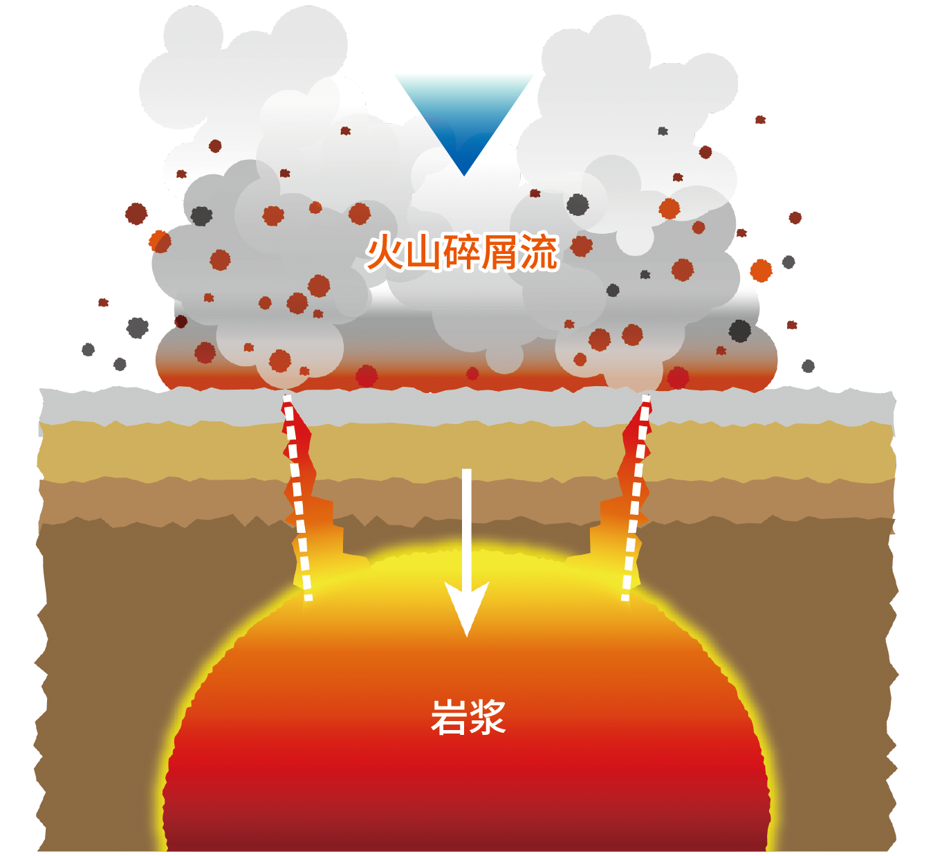 火山喷发产生火山碎屑流,开始形成破火山口,