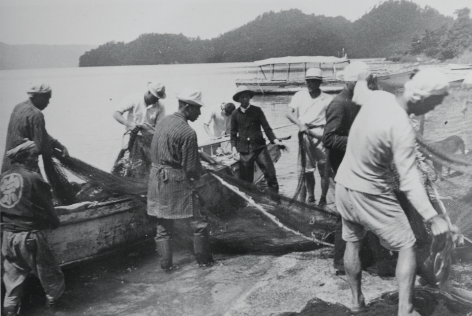横跨秋田县与青森县交界处的十和田湖,是十和田八幡平国立公园的核心性存在。在十和田湖内的中山半岛的根部供奉的十和田神社,从数百年前开始就有参拜者到访,但由于道路不好,附近也没有大的城镇,因此十和田湖本身并不是很人气的观光地。十和田湖变得被广为认知,其契机是作家大町桂月(1869-1925)在20世纪初到访十和田湖并发表了游记。作为十和田湖观光之父而闻名的和井内贞行,在1897年辞去了当地矿山公司的工作,投身于鱼类养殖。同年,他在位于十和田湖西北的银山开张了“观湖楼”旅馆,率先向游客宣传了十和田湖。1905年红鳟孵化场事业取得成功后,和井内愈发致力于十和田湖地区的观光开发,并对酒店等基础设施建设和交通完善进行了支援。